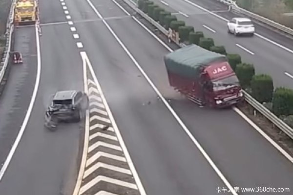 一小客车在高速横跨两车道突然停车减速变道,导致后方一蓝牌货车刹车不及时发生碰撞。事故发生后,小车车主竟指责货车司机未保持安全距离,好在高速交警明事理,直接判定小车全责。