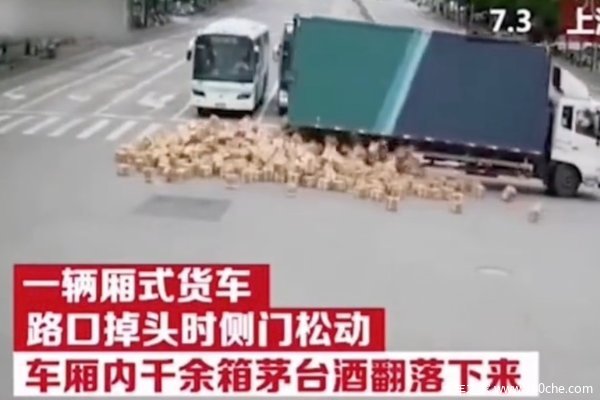 千余箱茅台酒从箱货一侧甩出 这得赔多少钱啊?