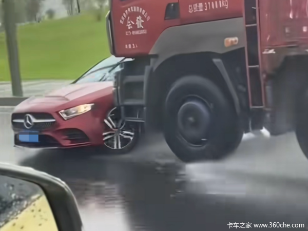 货车大雨中推行奔驰行驶超1公里!这是什么仇什么怨?