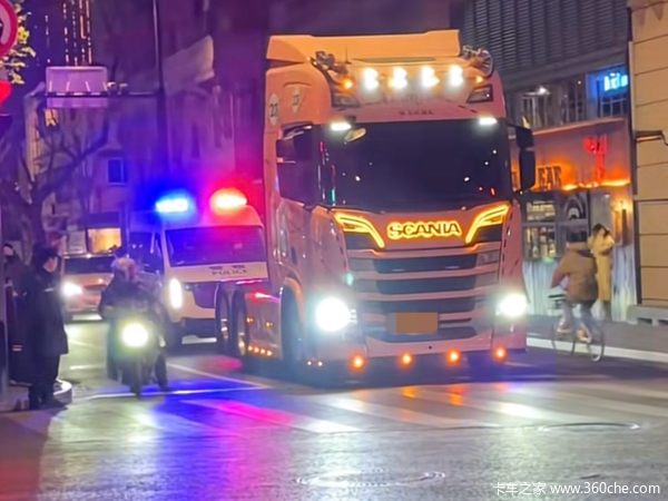 就这两天,卡车中的劳斯莱斯——斯堪尼亚也现身武康路,在夜色中给街头群众来了一场灯光秀。