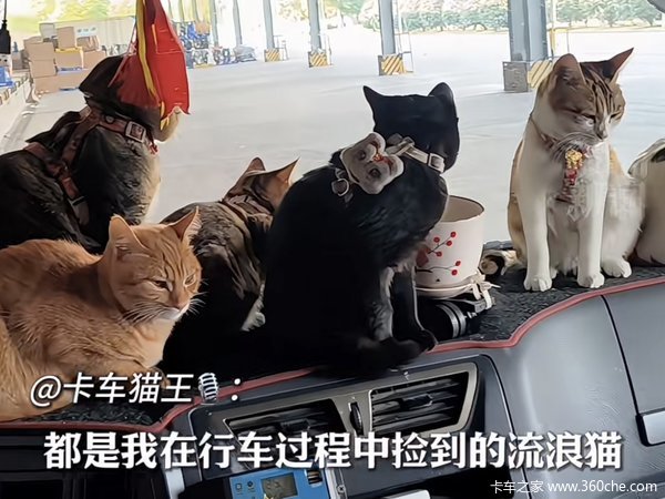“卡车猫王”的这九只猫都是他在跑货运的过程中捡到的流浪猫,风里来雨里去,他和这些小猫吃住都在一起,从来没有离开过它们半步。