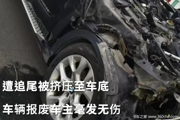 小车钻车底车头严重变形 车主却毫发无伤是咋回事