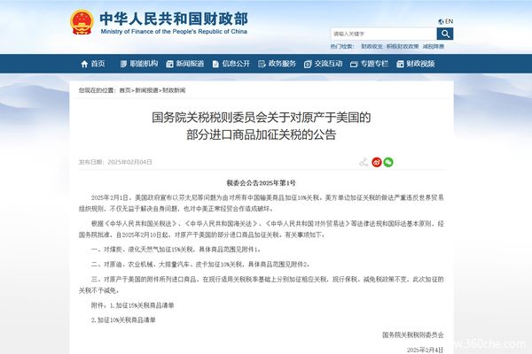 近日,国务院关税税则委员会发布重磅公告:自2025年2月10日起,对原产于美国的煤炭、液化天然气等战略性能源产品加征15%关税,对原油、农业机械、大排量汽车及皮卡等商品加征10%关税。