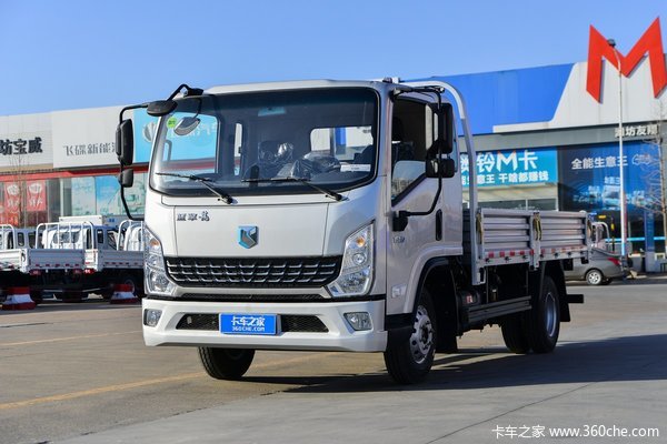 车身尺寸方面,该车的长宽高为5995×2200×2310mm,轴距为3300mm。该车匹配了一款栏板式货箱,货箱尺寸为3850×2100×400mm,货箱为5开门设计,装卸货时的灵活度更高。