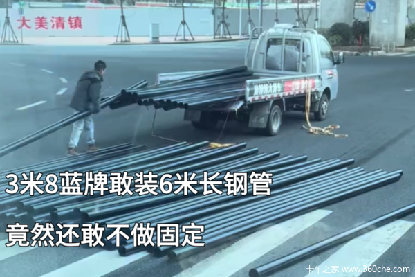 3米8蓝牌硬拉6米钢管?这司机心真大!