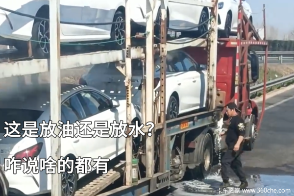近日,有人拍到一辆轿运车正在不停的向外排放液体,有卡友评论是放柴油也有说是放水。很多人都说在服务区被这种车问过要不要油,这是卖不出去了全部扔了?