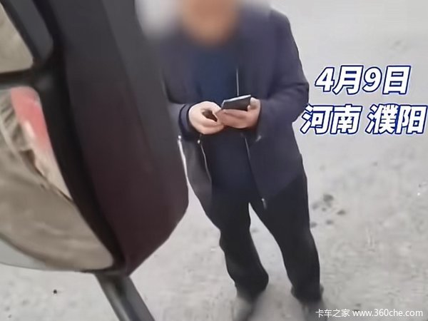 4月9日,在河南濮阳,一卡车司机在省道路边停车休息,被一大爷要求交停车费,还称要么交钱,要么就得去路边的餐馆消费。