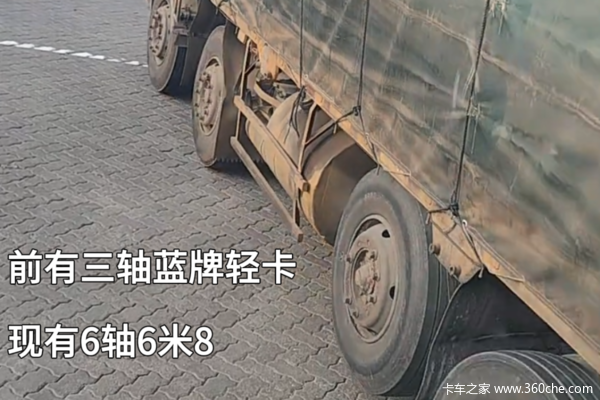 前有三轴蓝牌轻卡,现有6轴6米8,货运市场真是让这种人玩坏了。能够看到这台车的货箱可以说是被完全撑满了吗,这承载能力,即使是装钢卷也绰绰有余,不知道这种车平常在货运平台上都接什么单,B证的司机也是拉上49吨了,人家超载被抓时切割罚,这个被抓住不知道是不是卸下来多余的轴。