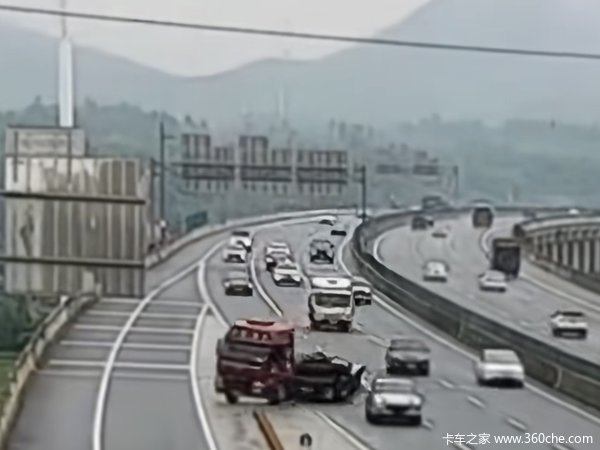后方货车紧急避让,结果失控撞向护栏,导致货车司机腰椎受伤,车辆气体燃料泄露。