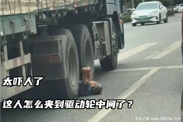 近日,有人拍到一辆牵引车车头驱动轮中间,还躺着一个人,从视频中看地上没有血迹,轮中间的人也还能动,但是只漏出的半截身体从远处看真的有点吓人。看评论区网友评论,是因为车主和轮下的人发生了纠纷,于是就出现了这样的骇人一幕。不管多大仇,多大怨,一定要先保障自己的人身安全不是吗?如果司机也上头,后果真的不敢想象。卡友们,你们怎么看?