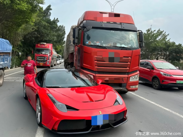 近日在广东,一辆货车和一辆法拉利发生碰撞事故。