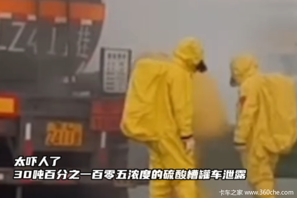 30吨浓度105%的硫酸槽罐车泄露,太吓人了。