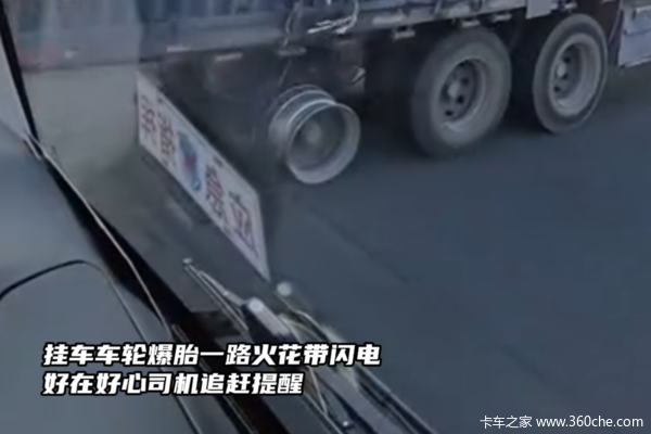 近日,一卡车司机在路旁休整时,看到一辆正在行驶的货车挂车没有轮胎空转着轮圈在路上飞驰,应该是在某一处爆胎了车主没发现,就这样一路火花带闪电跑了这么远。这么跑下去,轮圈随时可能崩坏,甚至引发自燃!眼瞅这惊险一幕,来不及多想,路旁休整的司机立刻一脚油门追了上去。