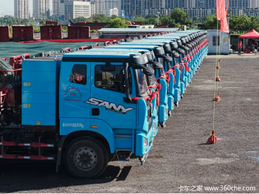 卓新物流董事长黄志勇,丰城润铭建材董事长邹国辉,三一集团副总裁、三一重卡副总经理周万春,三一重卡东南分公司总经理姚腾等嘉宾出席交付仪式。