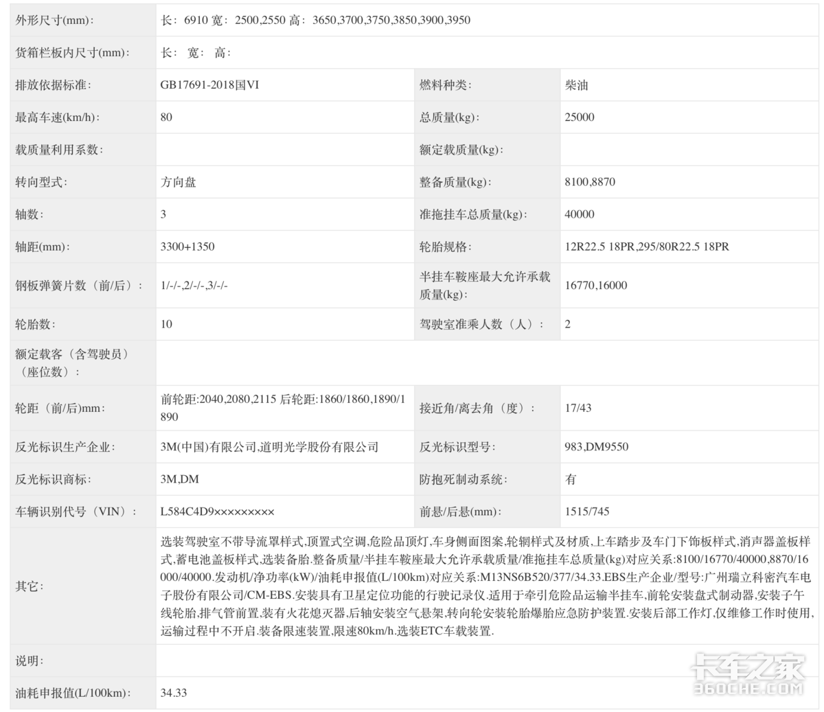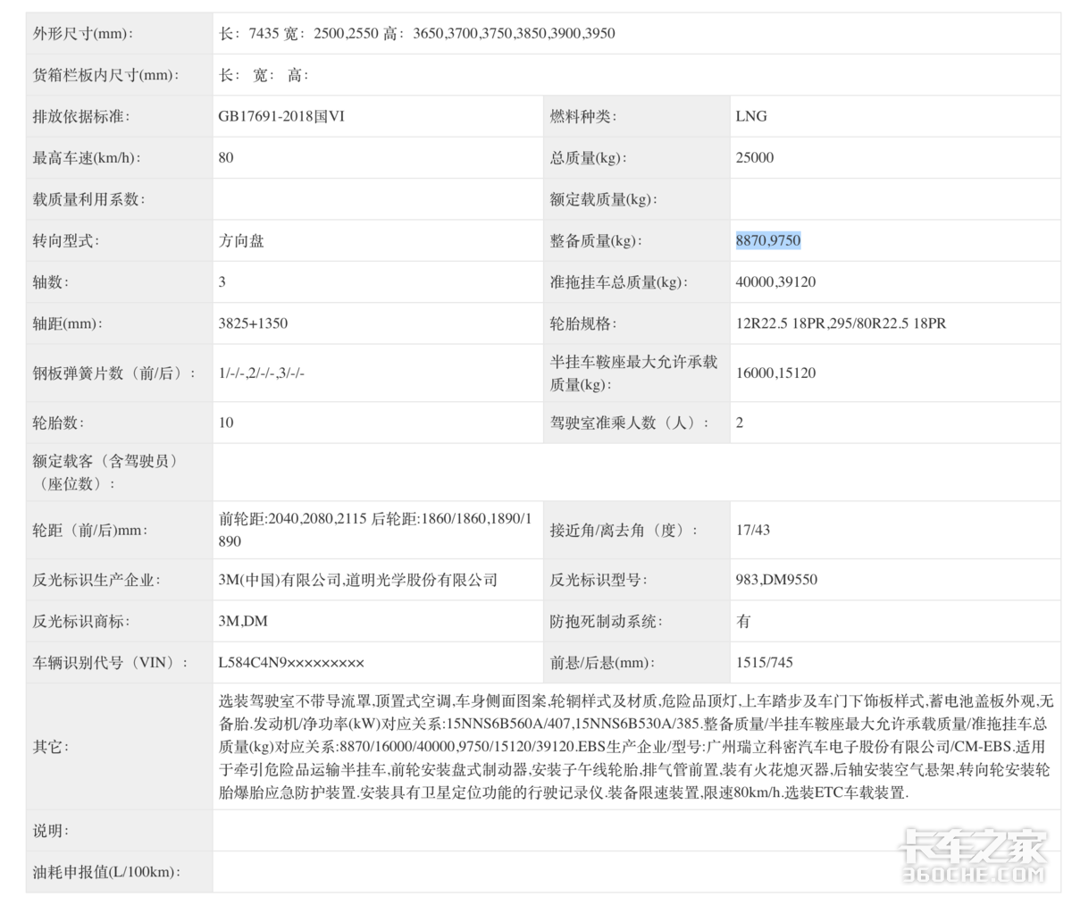 此次398批汽车公告中,集瑞联合申请了一款金凤凰燃气牵引车公告和一款元凤凰柴油牵引车公告,均采用的是康明斯发动机,其中柴油版本搭载的是康明斯M13NS6B520发动机,整备质量8100,8870kg,燃气版则搭载的是康明斯15N560马力、530马力发动机,整备质量8870,9750kg,两款车均采用的是前钢板悬架后气囊悬架的设计。