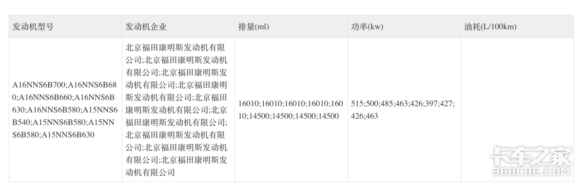 燃气车方面,第398批汽车公告中,福田欧曼也申请了一款GTL燃气牵引车的公告,搭载的是福田康明斯A15、A16系列发动机,马力可选540、580、630、660、700马力,大马力燃气牵引车市场的又一力作。