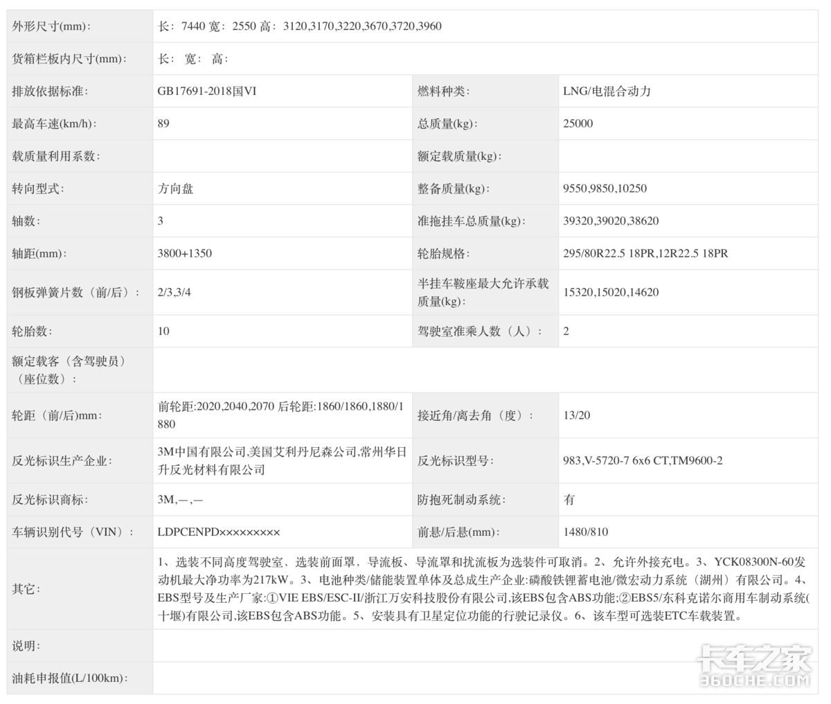 东风汽车申请的同样是一款东风牌插电式增程混合动力牵引汽车,LNG/电混合动力,发动机采用的是YCK08300N-60,峰值功率为221kW,储能装置为磷酸铁锂锂离子电池,采用的是微宏动力系统的产品。