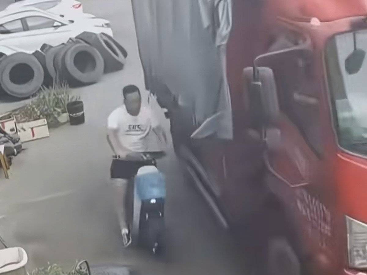 从视频来看,该男子骑着一辆共享电动车紧贴大货车行驶,在与货车根本没有接触的情况下顺势倒地,还不忘用脚顺势将电动车往货车下方踢了踢。