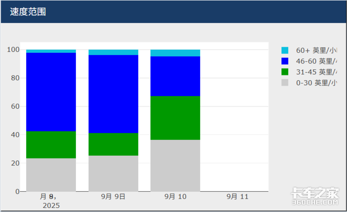 从NACFE提供的Run onLess实时页面可以看到,13支车队的车辆仍然在按照自己的节奏运行中,我们取两车在18天内的表现来进行分析,在仪表盘上呈现出的直接指标差异较大:
