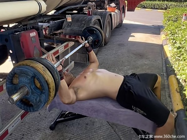 近日,一卡友晒出视频,在服务区休息时,他搬出了自己的“家伙事儿”——健身板凳、杠铃、杠铃片,直接把卡车的车架变成了卧推架,在服务区现场就锻炼了起来。开车本就累人,卡友竟还能抽出时间健身,这精力管理能力让人佩服。
