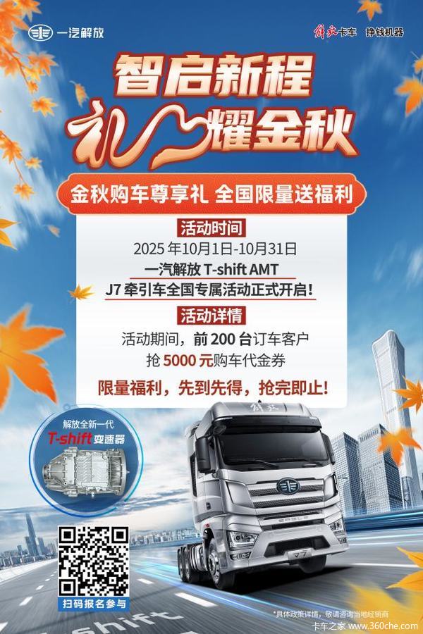 金秋十月,随着“一汽解放T-shift AMT J7牵引车全国专属活动”拉开序幕,解放全新一代T-shift 12挡AMT变速箱在多地掀起销量狂潮。据悉,截至当前,解放动力T-shift系列变速箱销量突破8000辆,尤其在高端物流、干线运输、冷链专线等对效率要求极高的细分市场,T-shift AMT变速箱成为众多卡友的“首选”,成为商用车市场罕见的“现象级爆款”。