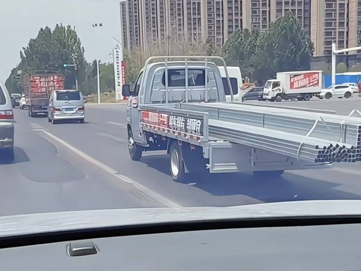 这么小的车敢拉这么长的钢管,重心全在车后,危险系数直线飙升。稍微打快点方向,或者遇到坑洼,车直接就能翻过去。