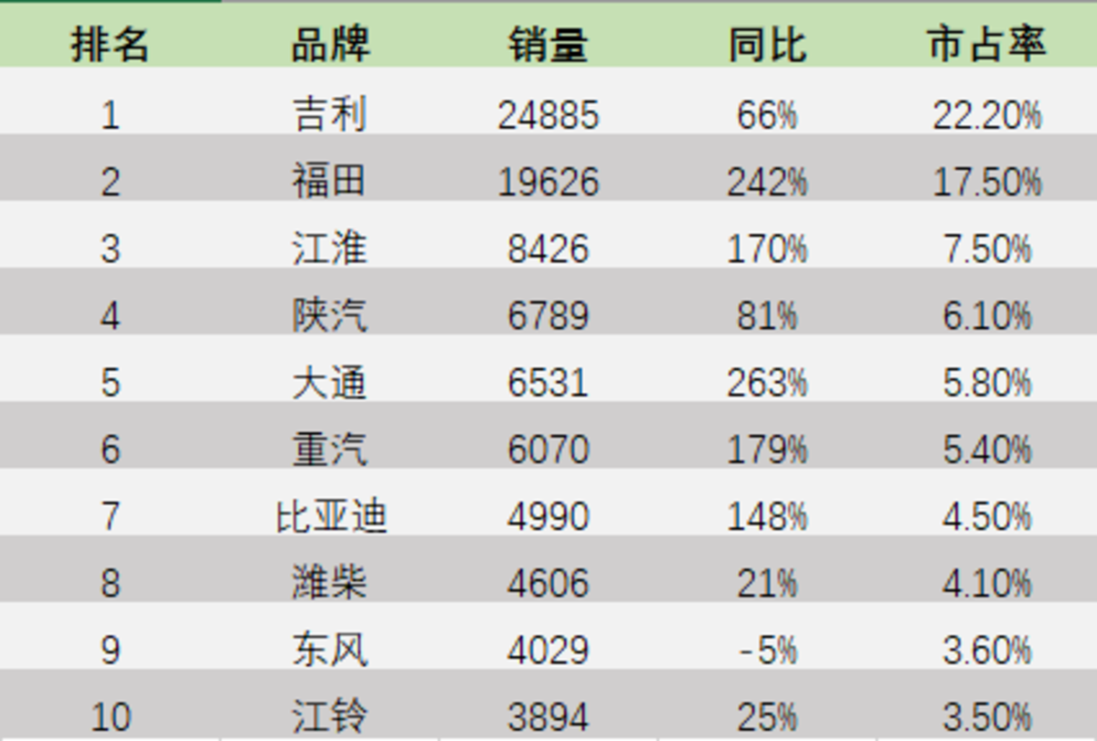 与此同时,新能源轻卡市场的争夺赛也进入白热化阶段,而其中,有一匹增速“黑马”的实力不容小觑。