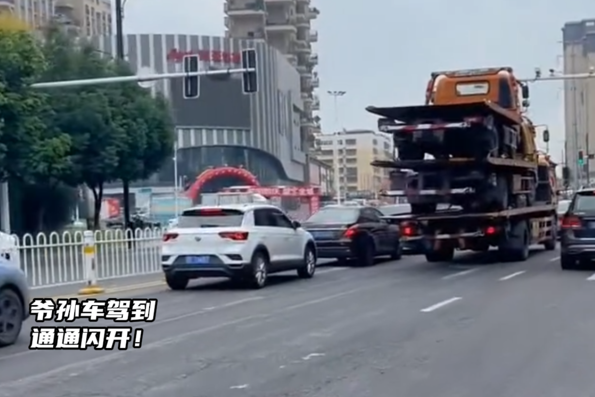 近日,有网友拍摄到在正常通行的公路上,一辆拖车拖着两辆落在一起的卡车正在等红绿灯,场景开起来怪诞又危险,不知道这辆车旁边的车主慌不慌。这台拖着两辆卡车的拖车很明显已经超高,如果遇到紧急情况,车辆翻车是必然,在车辆如此密集的公路上,危险程度不亚于移动的定时炸弹。