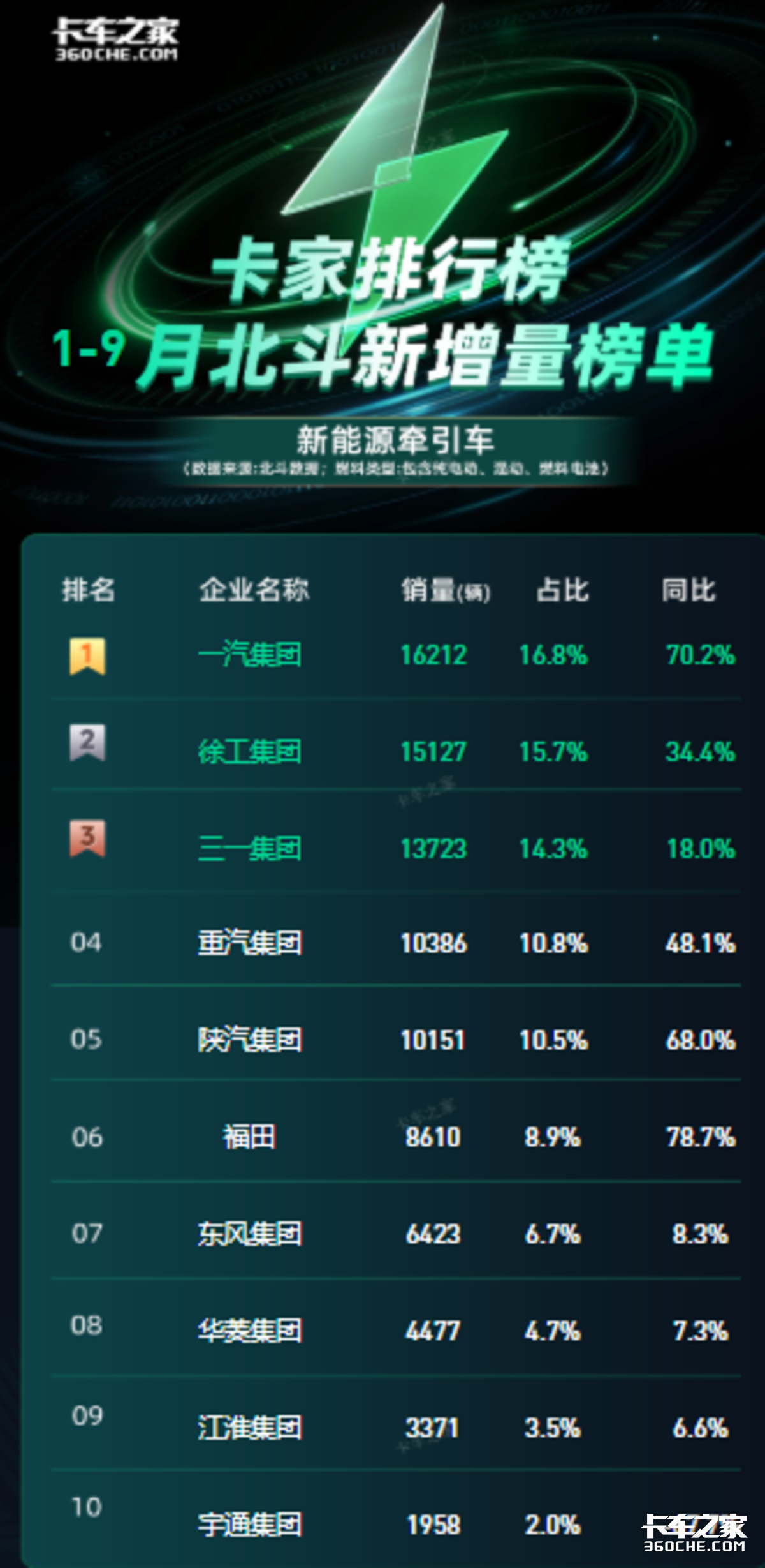 然而,聚焦纯电仅仅是拿到了入场券。真正的生死战在于能否攻克牵引车市场——这个新能源物流的必争之地。而现实更为残酷:不仅在其弱势的牵引车领域强敌环伺,就连它曾占据优势的自卸车与搅拌车市场,也早已是红海一片——前10名企业已分别垄断了95.5% 和近乎100% 的份额。