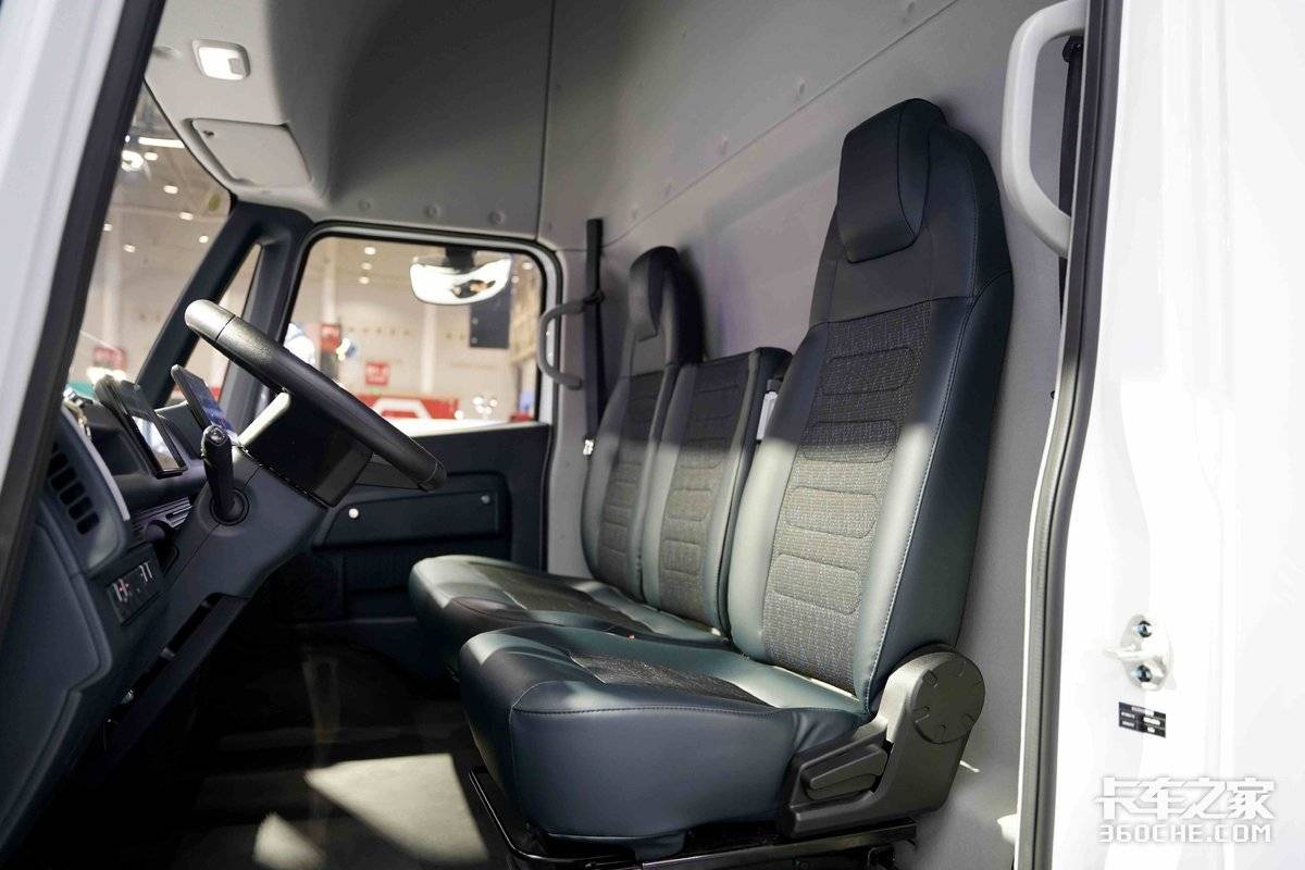 更舒适:行业最宽的2170mm高顶纯平地板驾驶室,内高1850mm,真正实现了从“驾驶座”到“移动生活空间”的跨越。