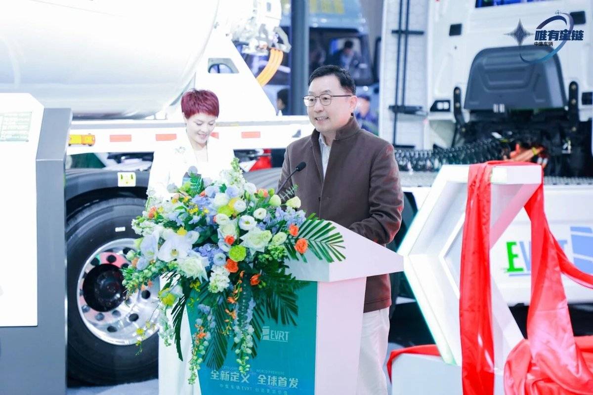中集车辆以 “唯有星链” 为主题打造的三大展台现场,集团重磅宣布:全球首发 EVRT 纯电动头挂列车解决方案及完整生态圈。这一以 “车 + 站” 一体化为核心的创新模式,不仅成为中集车辆 “星链战略” 落地的关键成果,更标志着中国重型物流正式迈入 “电动化 + 智能化” 协同发展的全新阶段。