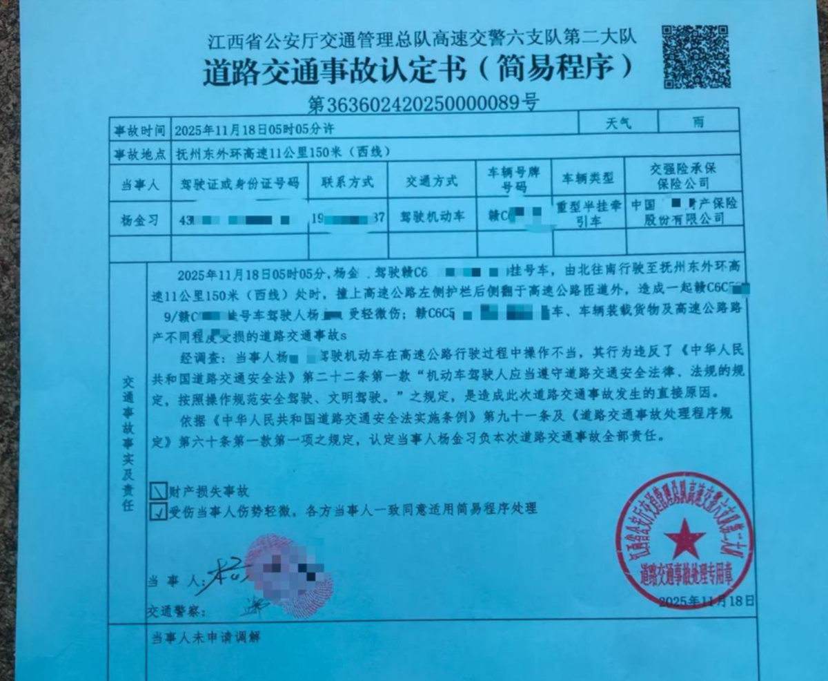 11月18日,他在江西抚州东临环城高速因刹车失灵侧翻,本是惊魂未定的受害者,却在就医归来后陷入另一重困境——一份未经告知、未经授权的“天价账单”,让无数网友联想到曾引发全国关注的“贺氏吊装”案。