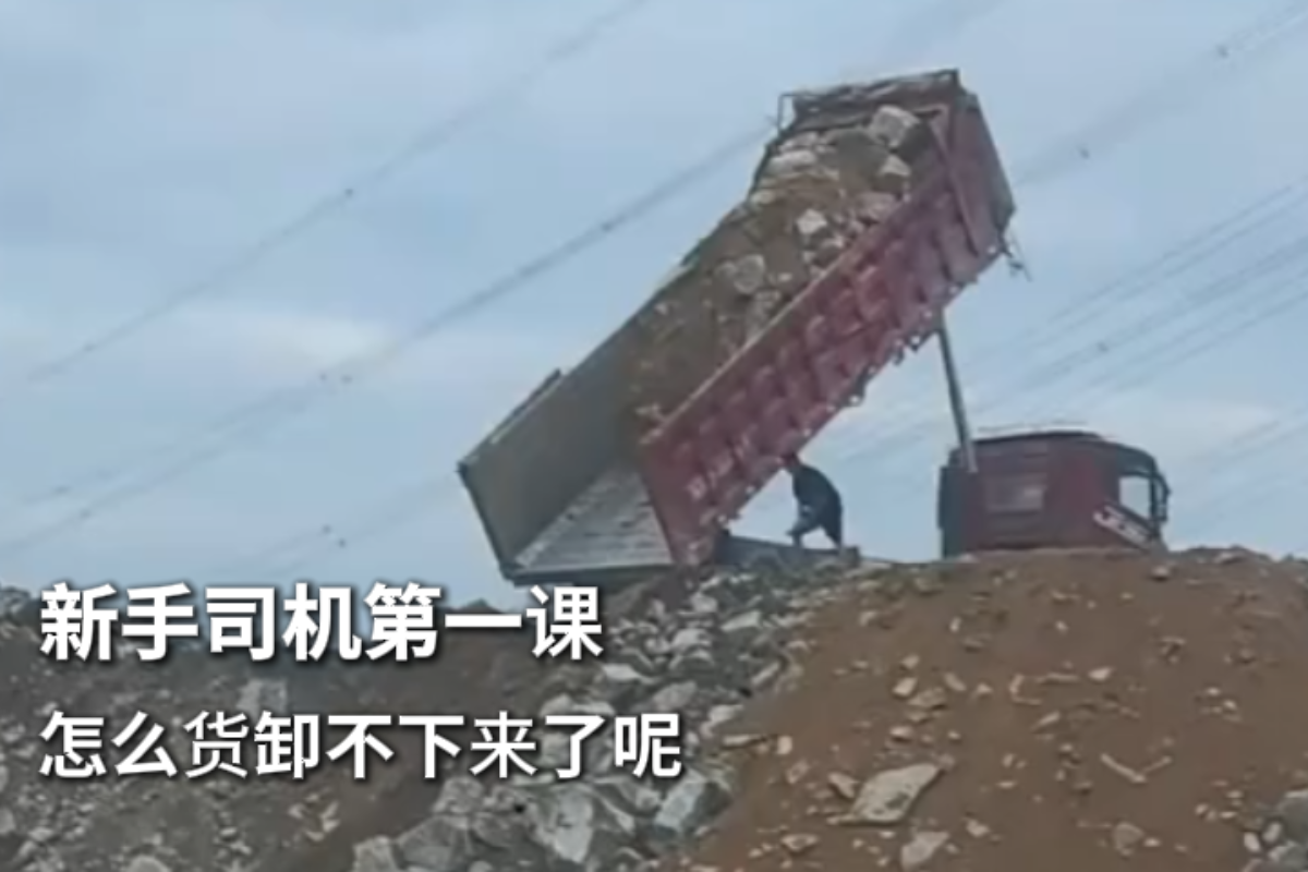 近日,有人拍摄到一司机在坡上卸石头时,后翻自卸的车斗已经升到最高,但是这些石头、辅料就是不往下出,这司机看着也是绞尽脑汁。评论区有卡友说,上车往前开一点,在倒车急刹一下,货不就卸出来了。