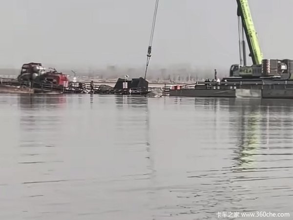 货车过黄河花园口浮桥,部分桥面塌陷!