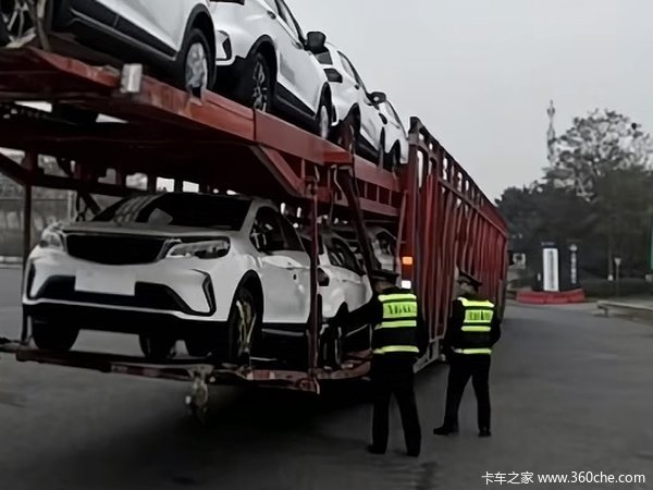 12月17日重庆,执法人员在G5013渝蓉高速科学城收费站开展专项检查时,一辆“火车”缓缓驶了过来。这是一辆装载了19辆小轿车、长达43米的巨无霸轿运车,后探长度惊人。