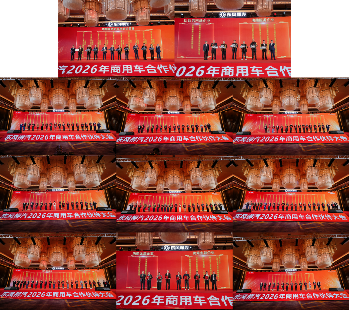 大会现场举行了隆重的颁奖仪式,为表现突出的合作伙伴授予行客开发跃迁奖、新能源跃迁奖、新媒体跃迁奖、功勋服务企业、功勋后市场企业、功勋金融企业、功勋经销企业、卓越运营官等20项荣誉奖项,彰显共赢为本的合作理念。东风汽车集团商用车事业部党委书记、总经理、东风柳汽董事长张小帆,东风汽车集团商用车事业部副总经理、东风柳汽总经理林长波等多位领导上台,为杰出的获奖合作伙伴颁发荣誉。