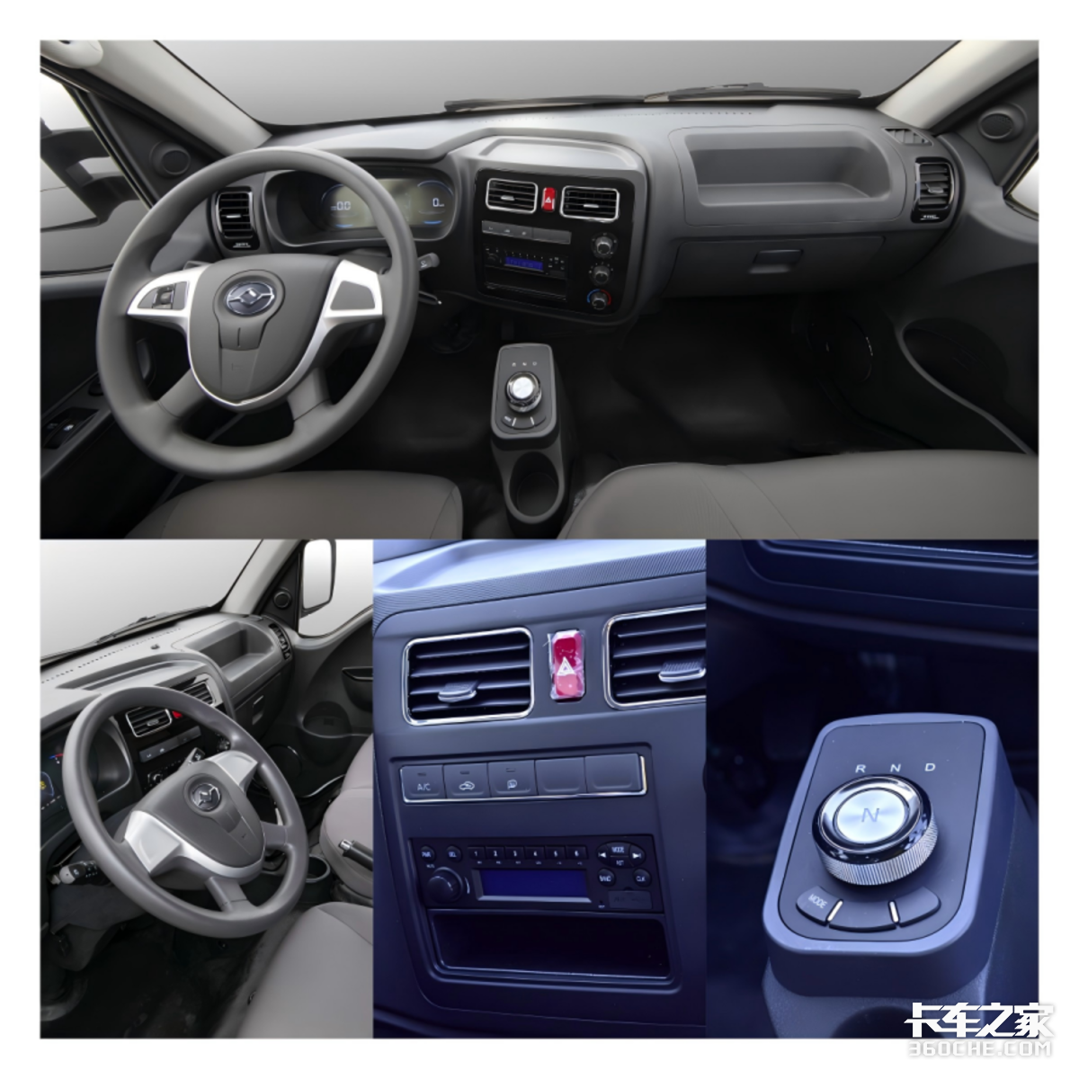 配置上,电动助力转向、制动能量回收、电动空调等实用功能一应俱全,电动调节加热后视镜、中控门锁+自动落锁等配置提升驾乘便利性。支持直流 + 交流双充电模式,补能灵活高效,为用户打造 “省心、省钱、高效” 的运输解决方案。