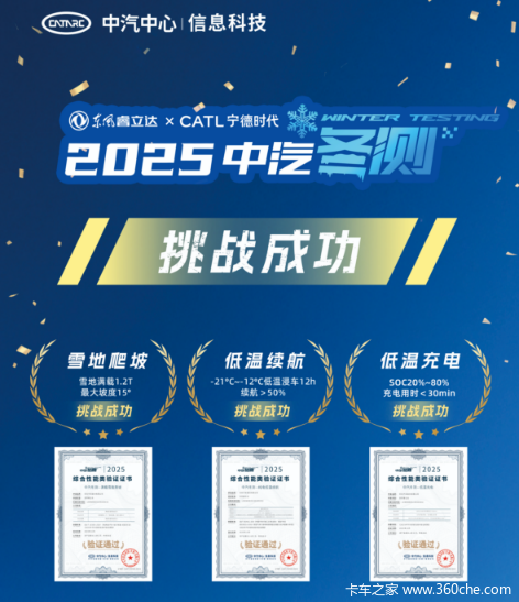 好产品,不惧严苛挑战,自有权威认可。近期东风睿立达V8E搭载宁德时代天行L商用电池产品参加了中汽信科极端环境技术验证,在权威测试中,满载雪面爬坡、纯电低温续航、低温充电各项指标均取得优异成绩!更被央视权威背书、"点赞"。