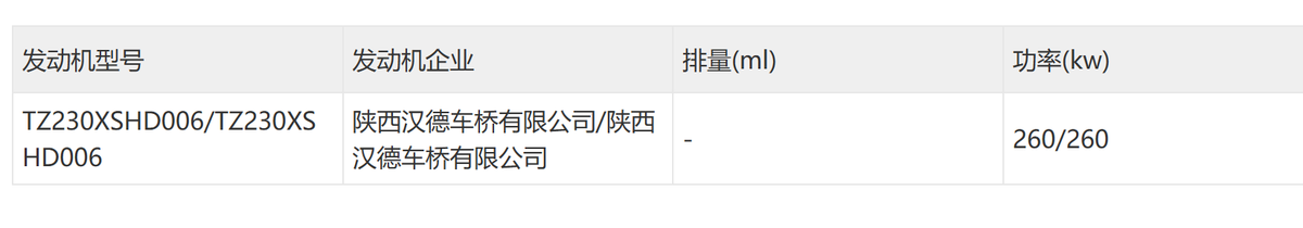 在驱动电机方面,该车采用了汉德自研的电驱桥,配置双车桥双电机布局,电机型号为TZ230XSHD006,峰值功率为260kW,约等于353马力。该车的综合动力输出约为700匹马力,动力系统也可能针对某些重载场景提供单桥双电机的驱动形式。