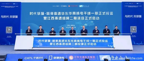 2月1日下午,宁德时代骐骥换电与江西交投赣粤高速携手共建的华东华南换电干线江西段首批12座重卡换电站正式投运,江西高速重卡换电网络二期同步启动。江西省副省长夏文勇、省政府副秘书长熊科平出席启动仪式,江西省国资委、江西交投集团、宁德时代等单位代表,以及安能、顺丰等物流龙头企业、主机厂等生态合作伙伴共同见证。