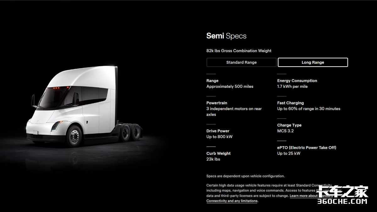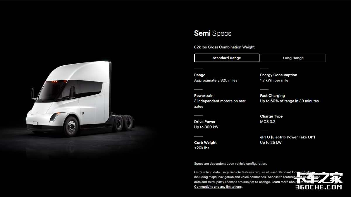 数据来源:特斯拉官网(www.tesla.com/semi#specs)