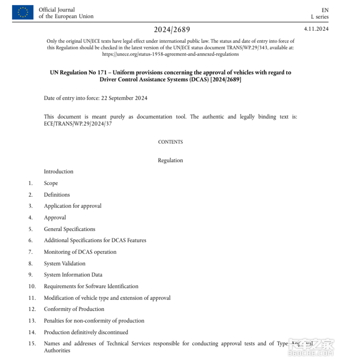 欧盟规定新注册货车须安装自动紧急制动等功能,其发布的UN R171法规,将L2级组合驾驶辅助系统纳入卡车进口全球规范。