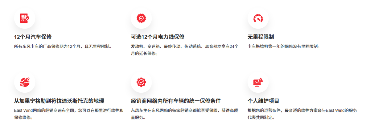 东风、一汽、陕汽、重汽、江淮等头部品牌,已在俄罗斯逐步搭建起经销商及售后服务网络,整体呈现网络快速扩张、配件与技术存在短板、区域布局差异明显的特征,与欧洲品牌相比仍有一定差距,下面便对中国卡车品牌在俄罗斯的售后情况进行详细盘点对比。