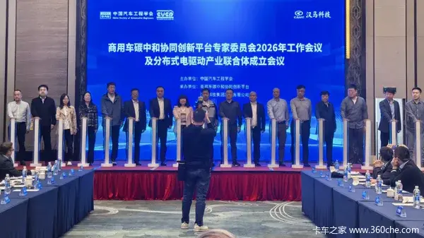 4月8日下午,由中国汽车工程学会主办、汉马科技集团股份有限公司承办的"商用车碳中和协同创新平台(CUCP)专家委员会2026年工作会议及分布式电驱动产业联合体成立会议"在安徽马鞍山隆重召开。来自中汽中心、东风商用车、一汽解放、中国重汽、北汽福田、宇通客车、比亚迪、斯堪尼亚、潍柴动力、康明斯等国内外商用车及核心零部件龙头企业的专家代表齐聚一堂,共商产业低碳转型与关键技术突破路径。杭州时代电动科技有限公司作为分布式电驱动领域的重要创新力量,受邀成为联合体首批成员单位并出席成立仪式。