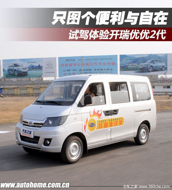 开瑞优优2代的外形在微面车型中属于较为时尚的,内饰借鉴轿车化和MPV车型的设计,档次感有所提升;空间表现也比较让人满意,满足日常的乘坐和拉货使用不成问题;方向盘的助力转向功能和挡位的MPV式设计,为驾驶者提供了便利。对于微面车型来说,并不追求有多快的车速和多强的动力,在胜任实用需求之外,图个驾驶便利和乘坐自在也就很知足了。