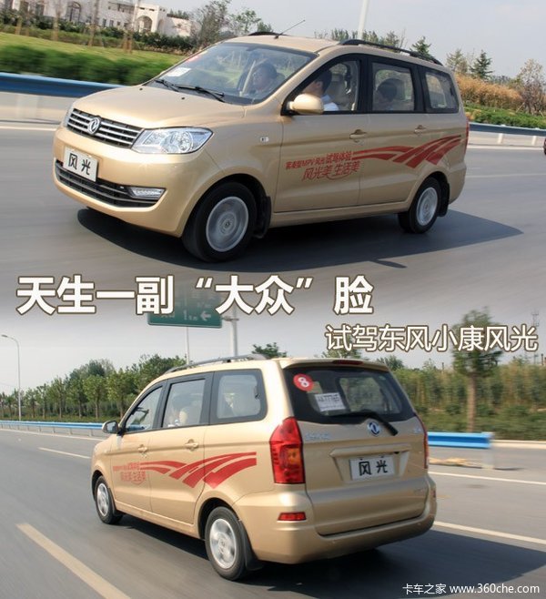 一副“大众”脸的外貌是东风小康风光在外观方面的最大特点,其前脸设计与上海大众途安有着百分之五十的相似度。可以看到东风小康试图把风光打造成为一款定位更加年轻化的全新产品。新车相比之前的试装车,前脸细节部分有所调整,三条幅中网格栅在增加镀铬装饰后视觉效果明显提升。