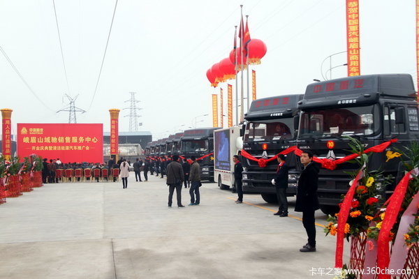 【卡车之家 原创】2014年3月23日,峨眉山域驰汽贸开业仪式暨清洁能源推介会在四川峨眉山市仓储物流园区召开。同时,36台LNG重汽HOKA H7豪卡牵引车的也在现场举行了交车仪式。