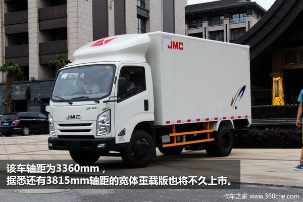 此次我们看到的是江铃凯锐800中体重载版轻卡,轴距和此前车型一样,都是3360mm。根据工作人员介绍,还会有一款轴距为3815mm的宽体凯锐800车型将会不久后和此车型一起上市。