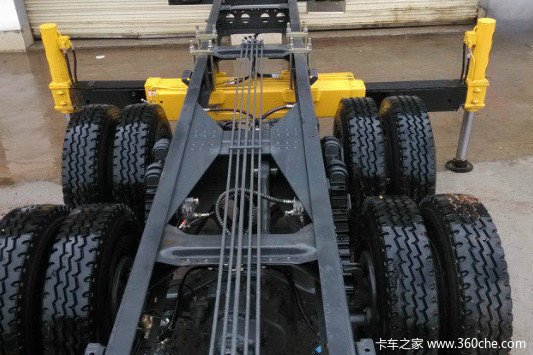 识别双腔支腿,一种比较简单的方法,就是从车辆的一侧观察支腿的固定腔,如果能看到另一侧支腿的固定支腿箱和液压管路,那就是双腔支腿。
