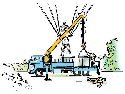 触电事故一般是由于随车吊吊臂接触或距离裸露的高压输电线太近没有保证足够的安全距离而使随车吊本身机体连电,进而造成操作员直接或间接遭到高压电的击伤。不光是随车吊,其他移动式起重机、水泥泵车甚至自卸车因触电造成人员伤亡或车辆烧毁的事故每年都有。